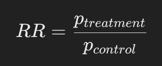 - RR = 1 (두 그룹 간 차이 x), RR > 1 (실험군의 전환율이 높음), RR < 1 (실험군의 전환율이 낮음)